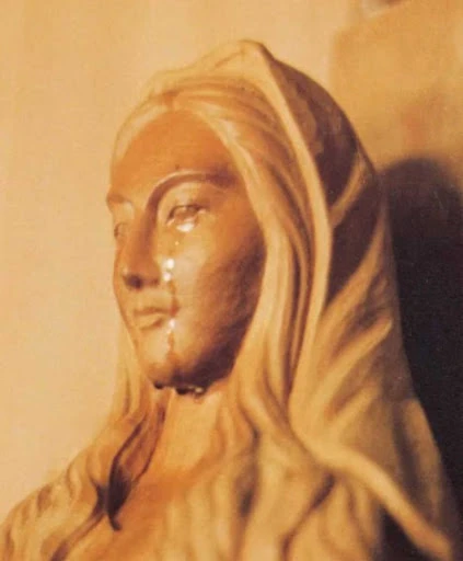 El 4 de enero de 1975, las religiosas del convento notaron algo inusual en la estatua de madera de la Virgen María que se encontraba en su capilla.
