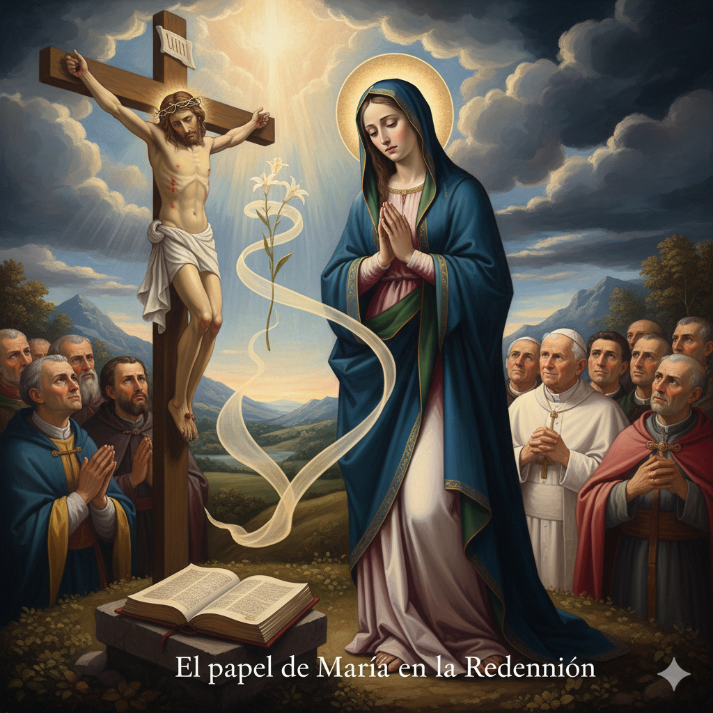 María, en su papel único dentro de la Redención, ofreció una cooperación activa y singular en la misión de Cristo, acompañándolo desde la Anunciación hasta el Calvario. La Virgen María no solo fue testigo de estos momentos clave, sino que participó de manera consciente, libre y maternal, jugando un rol esencial en el misterio cristiano.