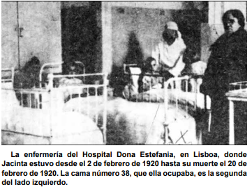 La enfermedad, sin embargo, fue larga y dolorosa. Sufrió una pleuresía que la dejó débil y delgada. Luego fue trasladada a Lisboa para ser operada de una herida en el pecho, sin anestesia completa. El dolor era insoportable, pero Jacinta lo ofrecía con una serenidad que conmovía al personal del hospital. “Todo esto lo ofrezco por los pecadores,” decía entre suspiros.