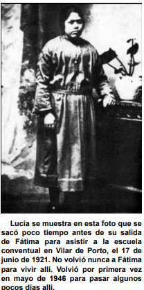 Partió de madrugada junto a su madre rumbo a Oporto. En la estación, las dos se despidieron entre lágrimas. Desde ese día, Lucía pasó a llamarse María de los Dolores para ocultar su identidad. En el convento fue querida por todas, y aunque nunca hablaba de Fátima, enseñaba a las demás el amor y la devoción a la Virgen. Más tarde ingresó como religiosa en la congregación de las Hermanas de Santa Dorotea.