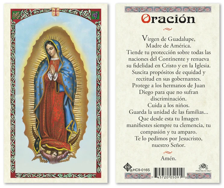 Muchas tarjetas de oración inspiradas en la Virgen de Guadalupe incluyen variantes de esta oración o frases muy similares pidiendo salud, consuelo y fortaleza.