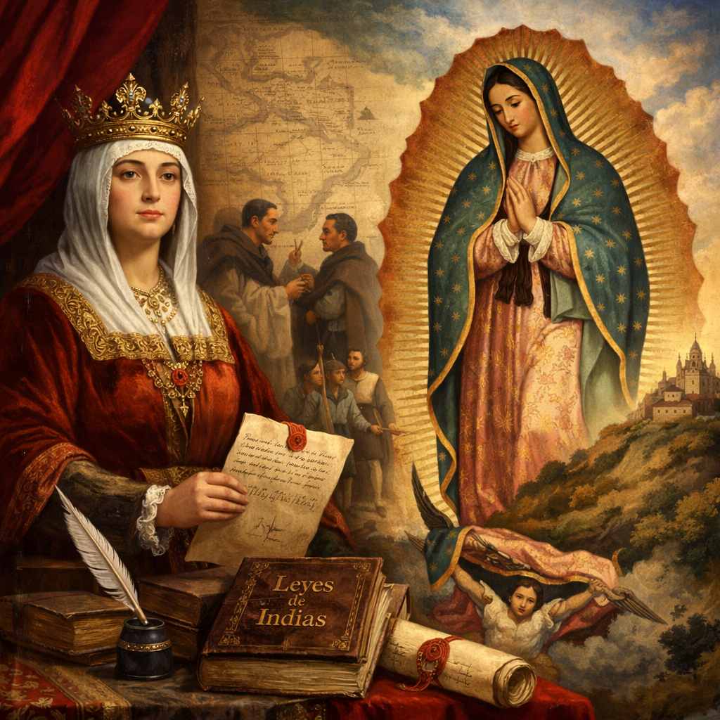 Así, la figura de Guadalupe se convirtió en signo de justicia, consuelo y reconocimiento, y en un puente entre dos mundos en conflicto. Su devoción acompañó los primeros procesos de evangelización y dio voz a los sin voz, recordando que la dignidad humana no depende del origen, la cultura ni la condición social. En este sentido, el acontecimiento guadalupano puede leerse como una continuidad espiritual del principio sostenido desde los inicios por la Corona: que los pueblos originarios eran personas libres, iguales ante Dios y merecedoras de respeto y protección.