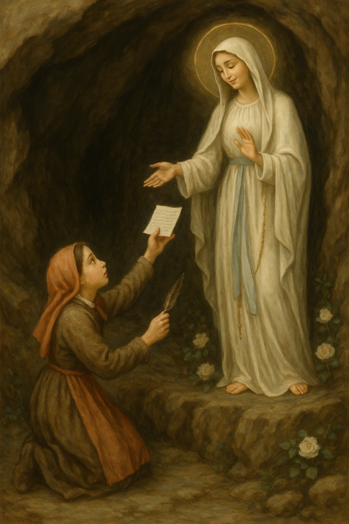 Bernadette respondió de corazón y a la promesa, la Señora añadió otra: